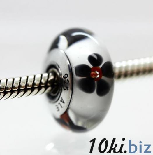 Шарм бусина Pandora (Пандора) "Муранское стекло Черно-белые цветочки"