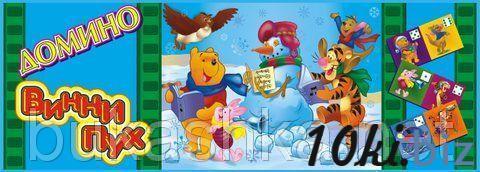 Домино "Ну, погоди!". Комплект состоит из 28 карт. Игроки выкладывают карты так, чтобы рисунки на прилегающих половинках были одинаковыми. Если у игрока нет нужной карты, он тянет ее из прикупа до тех пор, пока не сможет сделать ход. Выигрывает тот, кто первым избавился от карт. На картах изображены герои мультфильма "Ну погоди!".