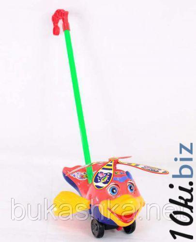 Каталка в ручку в виде вертолёта-рыбки. Выполнена из высококачественного, прочного пластика. При движении машет плавниками, мигает глазками; лопасти вращаются и звучит звоночек. Длина палочки (с удобной ручкой) - около 44 см.