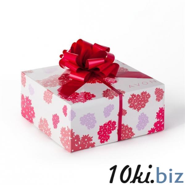 Элегантная подарочная коробочка украшена изображениями цветов в форме сердца и логотипом AVON на лицевой стороне и бантом ярко-розового цвета. Размер: 9 см (высота) х 20 см (длина) x 20 см (ширина). Материал: картон, полипропилен. Изготовлено в Польше.