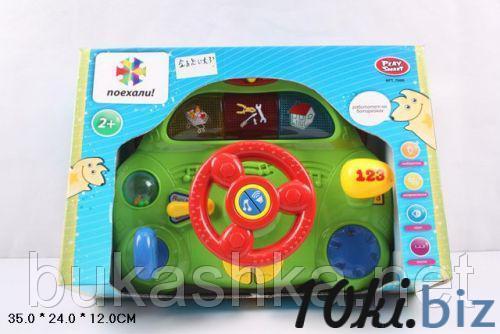 Руль музыкальный. Включает в себя: руль, гудок, поворотник, вращающаяся сфера, с цветными шариками, переключатель-счетчик. Имеет световые и звуковые эффекты (звуки, музыка, гудок)