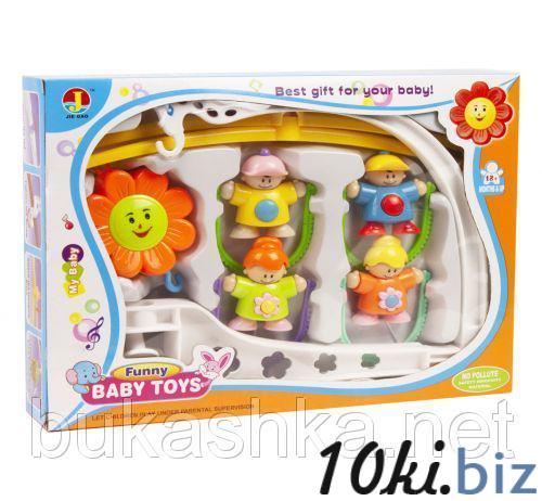 Красивая и яркая подвеска-карусель для детской кроватки. Имеет основу-цветок, на которой висят забавные погремушки-детки и крепление, которое присоединяется к кроватке. Также имеет запускной механизм, благодаря которому каруселька начинает крутиться и звучит приятная успокаивающая мелодия.