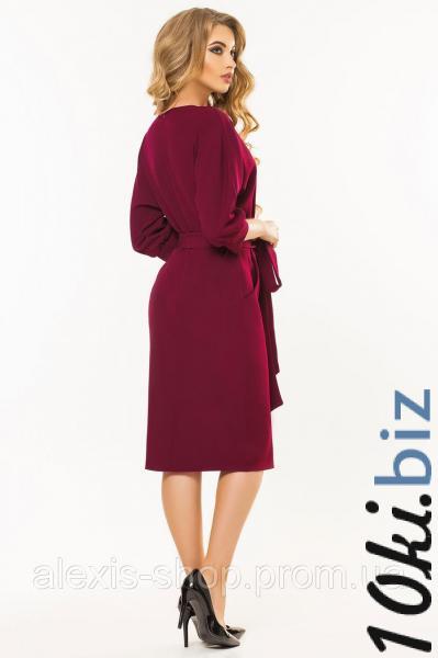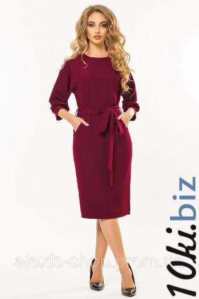 Бордовое платье с поясом и цельнокроеным рукавом Платья, сарафаны женские в Украине