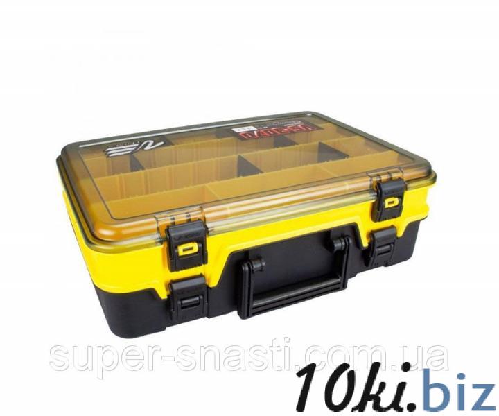 Рыболовный кейс с двумя отделениями. Верхнее отделение служит своего рода коробкой с системой фиксированных и съемных перегородок, позволяющей самостоятельно формировать внутреннее пространство. Прозрачная крышка с надежным шарниром имеет два надежных фиксатора. Нижнее отделение большого размера оборудовано системой фиксированных и съемных перегородок. Оно оптимизировано для хранения крупных приманок, а также инструмента, небольших коробок и т. д. Кейс оборудован ручкой для переноски.