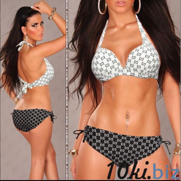Трусики -слип. Это является популярным решением, которое подходит абсолютно для любого возвраста. По бокам завязки. Логотип Gucci выложен стразами сбоку плавок.