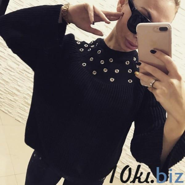 Свитер плотной вязки, отделка металлический декор Черный Женские свитера, водолазки, гольфы, кофты в Украине