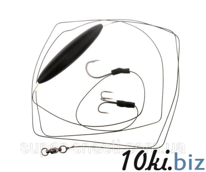 Готовый монтаж на сома. Оснастка подходит для использования как на водоемах с течением, так и на стоячей воде. Монтаж со шнуром включает в себя тройной и одинарный крючки, подводный поплавок черного цвета и высокопрочный вертлюг на подшипниках. Подводный поплавок приподнимает приманку над дном, что значительно увеличивает количество сомовых поклевок. Крючки обладают кованым цевьем, а также сверхострым жалом. Немаловажно, что у одинарника жало загнуто внутрь. Вдобавок крючки имеют высококачественное, антикоррозийное покрытие из никеля. Темное никелевое покрытие не только делает крючки малозаметными в толще воды, но и надежно сохраняет их от ржавчины.