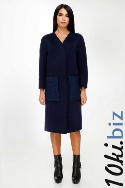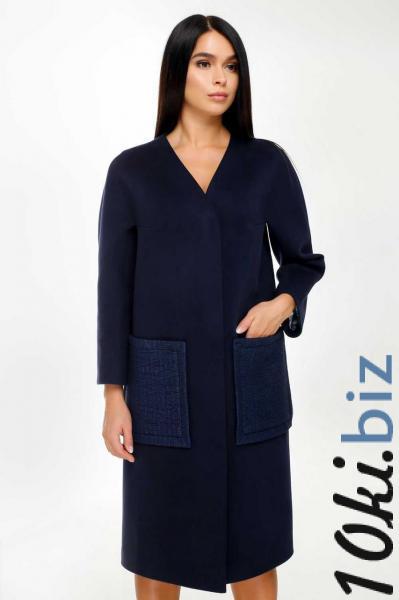 Пальто женское демисезонное, выполненное из двух видов ткани- фактурной и однотонного кашемира, прямого силуэта с цельнокроеными рукавами. Изделие с «V-образной» горловиной без воротника