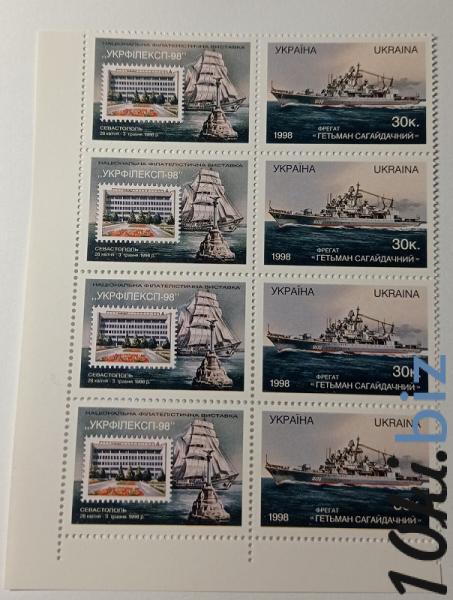 1998 № 187 квартблоки сцепок почтовых марок Филвыставка с КУПОНОМ Корабль и парусник Филателия в Украине