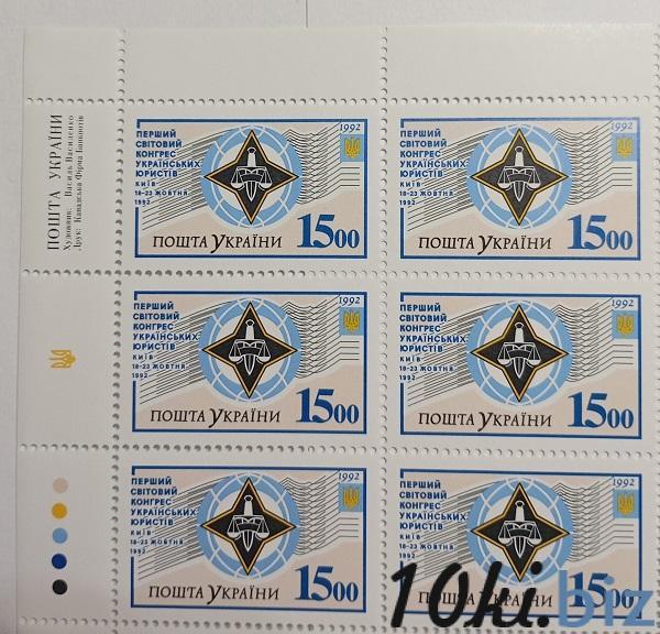 1992 № 30 угловой шестиблок почтовых марок Первый мировой конгресс украинских юристов Филателия в Украине