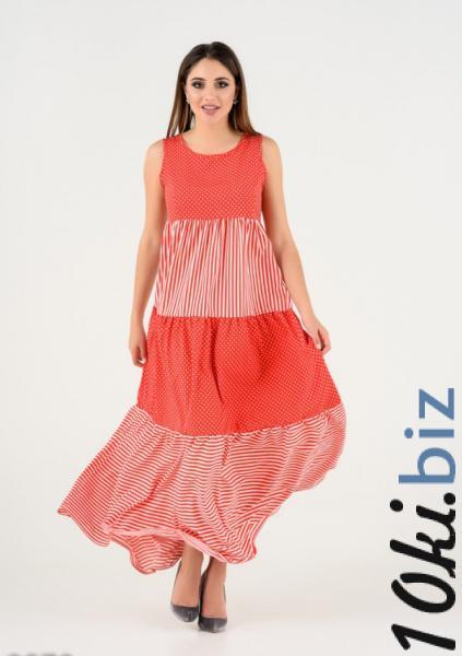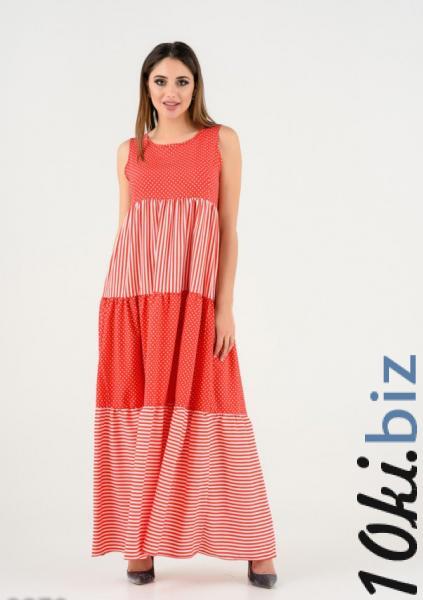 Повседневное либо пляжное платье на лето. Модель из хлопка, без рукавов, в пол; закрытая, но весьма привлекательная. Комбинированные детали ярко-красного цвета в полосу и в горох смотрятся диковинно и стильно, чему особенно способствует пышный силуэт.