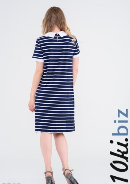 Привлекательное повседневное платье темно-синего цвета с белым воротничком и отворотами на рукавах. Модель в неширокую светлую полосу и с крупной звездой на груди, расшитой серебряными пайетками. Это - отличная вещь и в университет, и на прогулку, хороша как с туфельками, так и с кедами.
