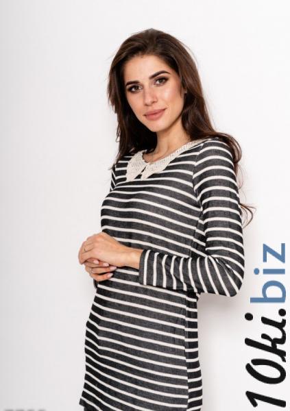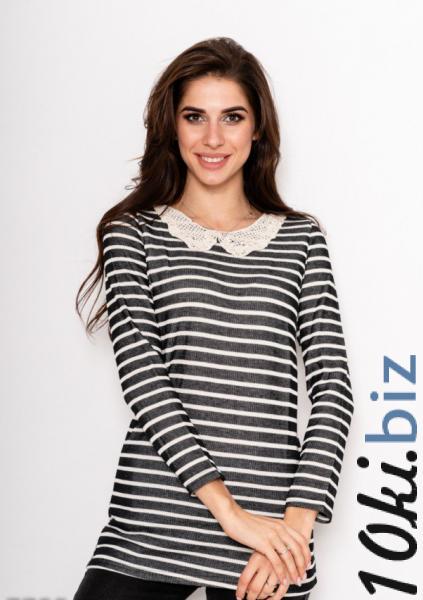 Черно-белая полосатая туника выполненная из не эластичного комбинированного трикотажа. Модель имеет удлиненный прямой и удобный крой с длинными прямыми рукавами. Горловина туники имеет круглый лаконичный вырез и декор в виде молочного ажурного воротника выполненного в стиле макраме.