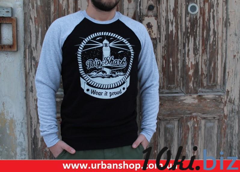 Свитшот Big Shark "Pharos white" меланжевый с черным. Стильный свитшот с оригинальным рисунком будет согревать вас в холодные вечера. На рисунке изображено море среди волн которого светит большой маяк, также присутствующее название фирмы - Большая акула, и есть надпись: "Носи это с гордостью"
