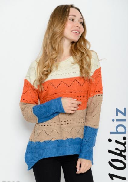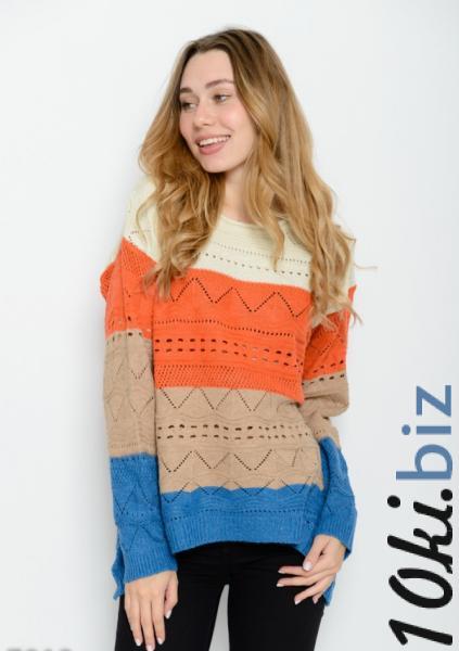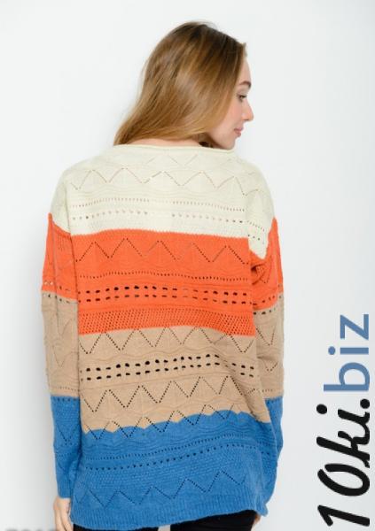 Шерстяной вязаный свитер с перфорациями и фактурным декором с круглой горловиной и длинными рукавами. Низ и рукава выполнены в виде фактурных эластичных вязаных манжет. Свитер свободного кроя оверсайз с удлиненной спинкой. Модель выполнена в молочном, оранжевом, бежевом и синем цветах, которые отлично гармонируют между собой.