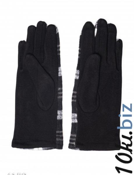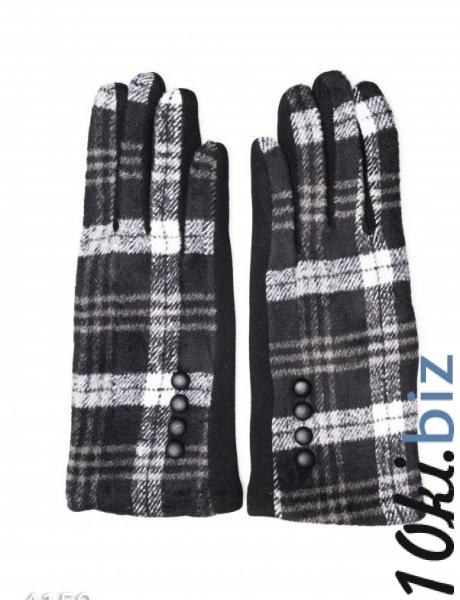 Трикотажные зимние перчатки черного цвета в белую клетку. Аксессуар средней длины, декорирован рядом небольших черных пуговиц. Модель утепленная флиссовой подкладкой.