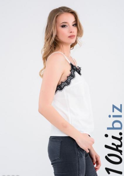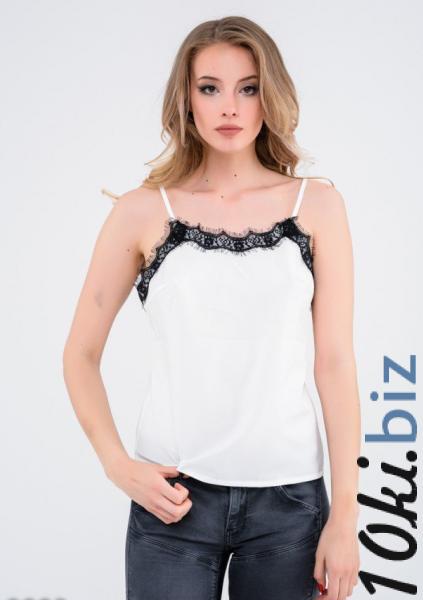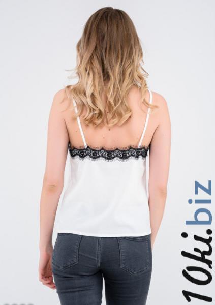 Белая атласная майка с контрастной отделкой из черного фестончатого кружева по верхнему краю хороша сама по себе и в комплекте с верхней одеждой, так как способна смягчить и придать женственность любому, даже самому строгому образу.