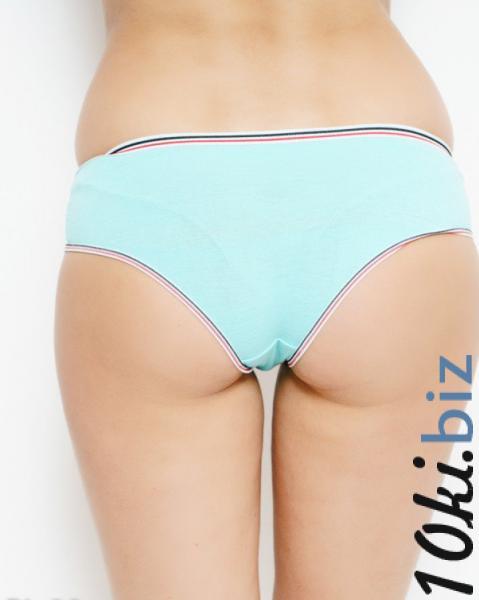 Повседневные классические трусики-слипы из практичного стрейч коттона мятного цвета. Модель средней посадки с завышенными проймами и широкими удобными боковыми частями изделия. Трусики оснащены ластовицей и тесемками вдоль пройм с яркими тонкими полосками.