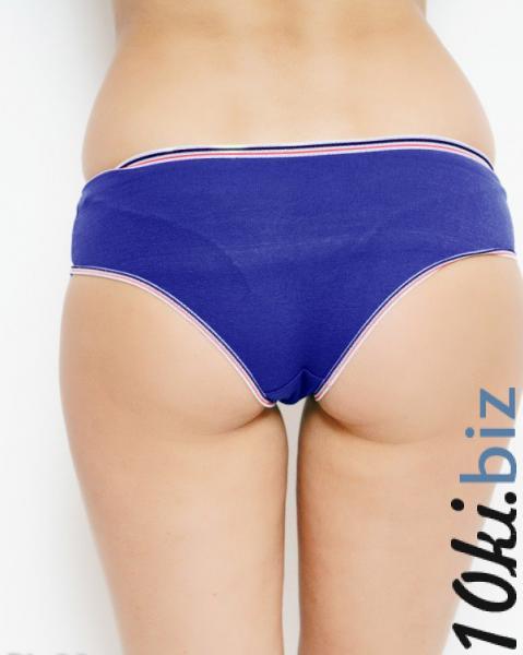 Синие яркие повседневные трусики из практичного стрейч коттона. Изделие выполненные в модели "слип" и обладают средней посадкой на бедрах. Изделие с завышенными вырезами пройм с широкими удобными боковыми частями изделия. Трусики оснащены тесемками вдоль пройм с яркими полосками и анатомической ластовицей.