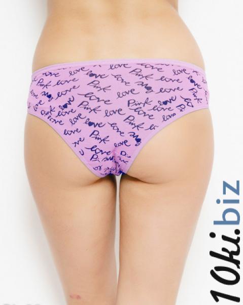 Оригинальные сиреневые трусики-слипы из эластичного коттона декорированные контрастными небольшими надписями на латинице. Изделие оснащено тонкими кособейками в тон на срезах и имеет среднюю удобную посадку на бедрах.