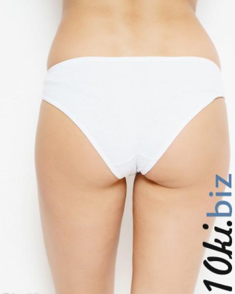 Белые повседневные хлопковые трусики модели слипов с низкой посадкой на талии. Изделие с эластичной резинкой и плоским бельевым швом на проймах декорировано двумя симметричными вставками из белого кружева.