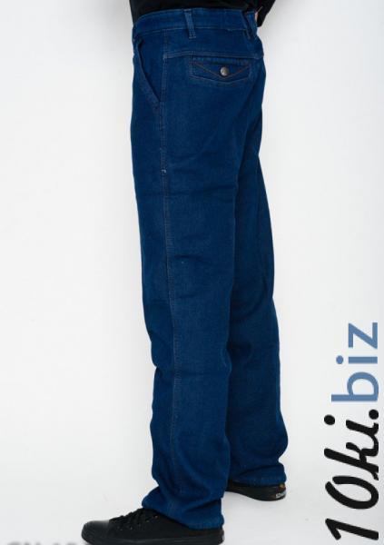 Синие однотонные классические утепленные прямые джинсы на флисе со стрелками. Модель прямого свободного кроя средней посадки на талии. Задние карманы декорированы листочками с заклепками. Модель на молнии со шлевками на талии для ремня.