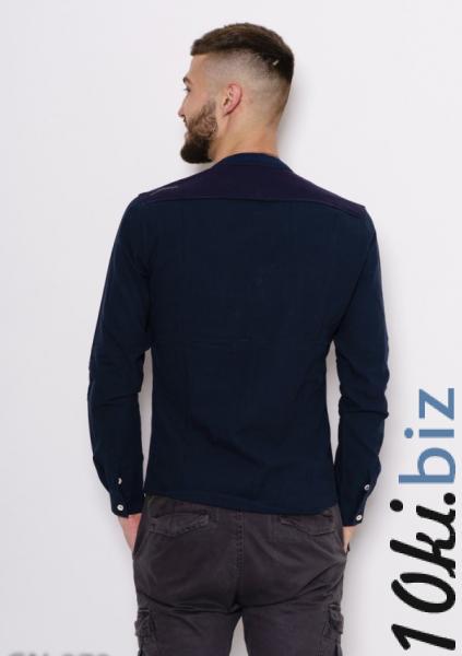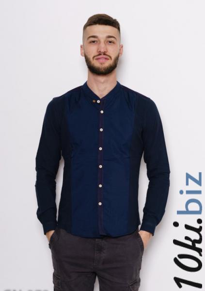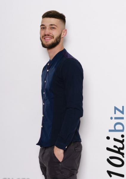 Темно-синяя коттоновая рубашка с более светлой трикотажной вставкой. Модель прямого приталенного кроя со скругленными срезами и длинными рукавами на манжетах. Рубашка оснащена традиционным рубашечным воротником и бордовой планкой с пуговицами.