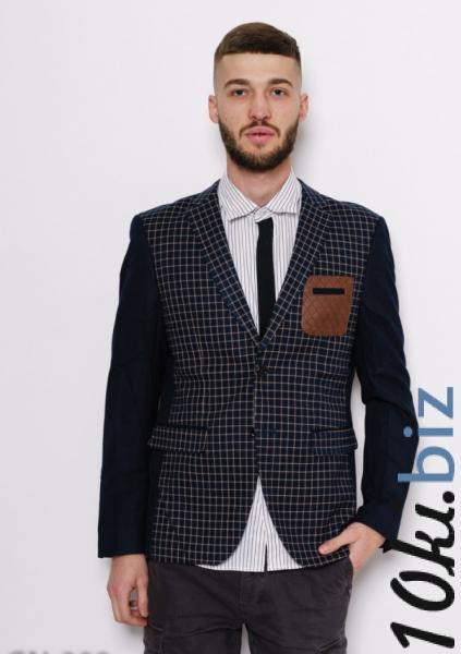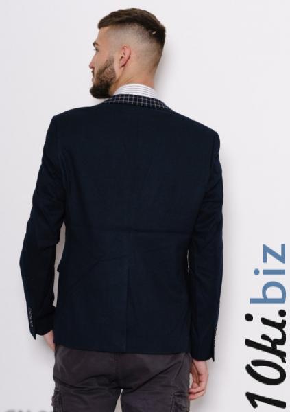 Темно-синий клетчатый приталенный пиджак из костюмки выполненный в молодежном повседневном стиле. Изделие на пуговицах с длинными однотонными рукавами и округленными отворотами пиджака. Модель декорирована стеганой вставкой на грудном кармане и оснащена двумя карманами с клапанами и классическим воротником.