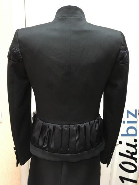горло, застежка-пуговицы. В верху рукава и низ пиджака украшен черным атласом.