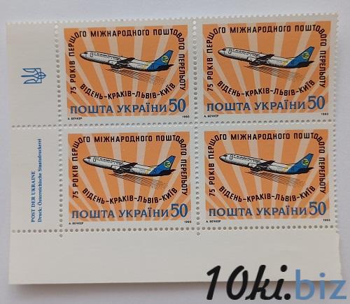 1993 № 39 угловой квартблок почтовых марок Самолет 75 лет первого международного почтового перелета Виден-Краков-Львов Филателия в Украине