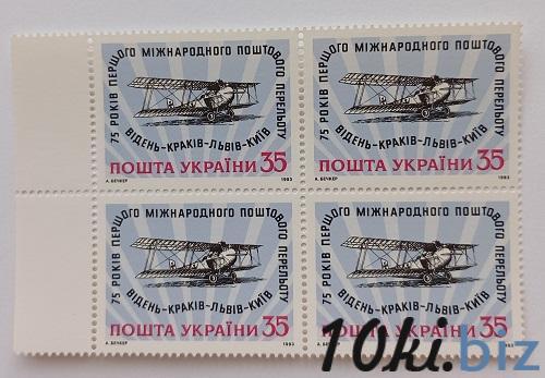 1993 № 38 квартблок почтовых марок Самолет 75 лет первого международного почтового перелета Виден-Краков-Львов Филателия в Украине
