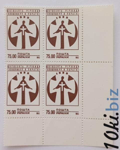1993 № 42 угловой квартблок почтовых марок 60 лет Голодомору в Украине Филателия в Украине