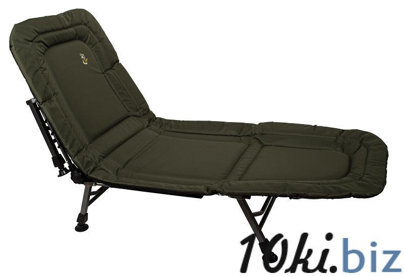 Спинка так же регулируется под любым углом, что дает возможность трансформировать раскладушку в карповое кресло.