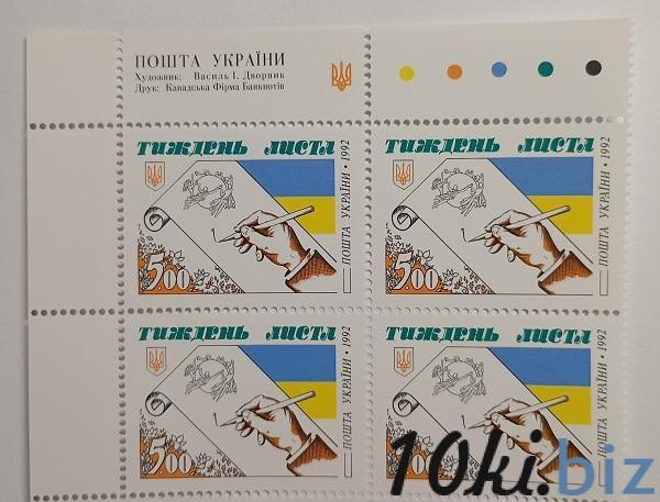 1992 № 29 угловой кварблок почтовых марок Неделя листа Филателия в Украине