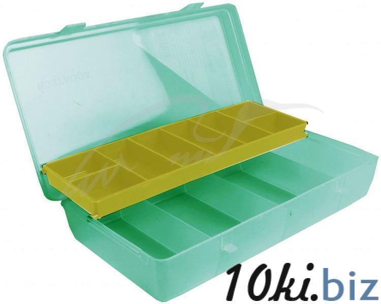 Коробка Aquatech 7100 изготовлена из качественного полипропилена, благодаря чему обладает повышенной прочностью и не подвержена воздействию различных масел и силикона. Особенностью конструкции является дополнительная полка, выдвигающаяся при открывании. Нижний отсек имеет 4 ячейки, а верхний 8 меньшего размера, что позволяет компактно поместить комплект небольших приманок, набор крючков, застёжек и другой рыболовной мелочёвки.