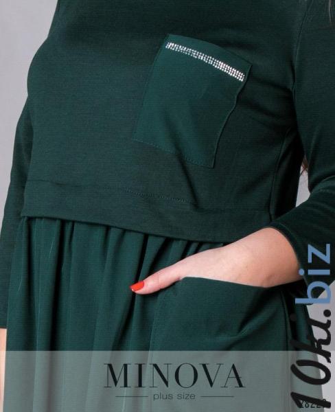 Замечательное, стильное, комфортное повседневное женское платье, выполнено из из комбинированных тканей. Платье с завышенной отрезной талией и расклешенным подолом с карманами. Лиф украшен декоративным кармашком на груди с блестящим кантом.