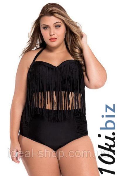 Женский раздельный черный купальник с бахромой на лифе.