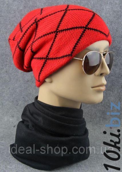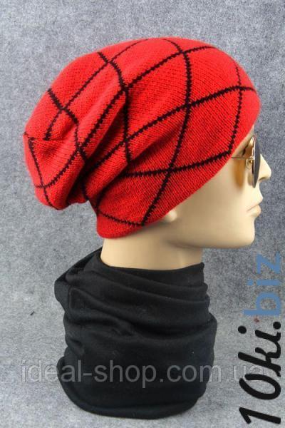 Двойная шапка, унисекс. Из плотного трикотажа, рисунок — крупная клетка.