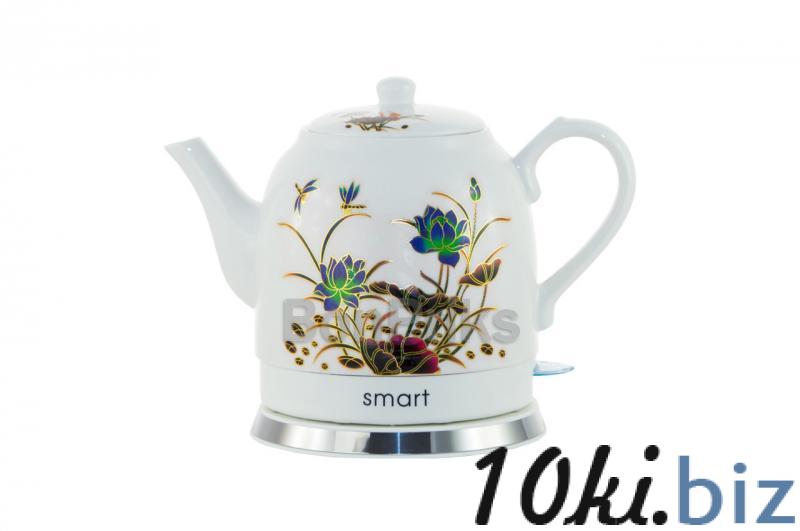 Материал корпуса - керамика. Защита от перегрева. Автоматическое отключение. Поворотная база на 360 градусов. LED подсветка. Изменение цвета чайника при нагреве.