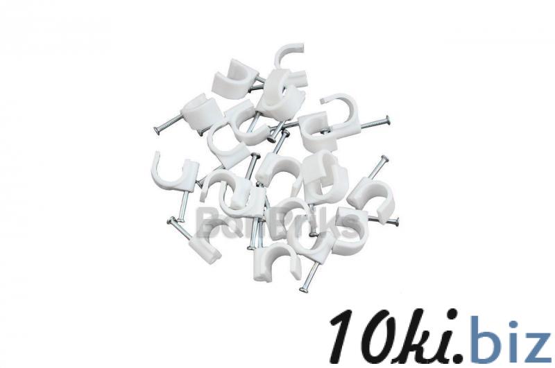 Скоба пластиковая с гвоздем применяется для крепления круглого кабеля или провода к различным поверхностям.