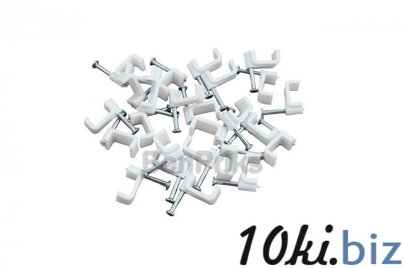 Скоба пластиковая с гвоздем применяется для крепления плоского кабеля или провода к различным поверхностям.