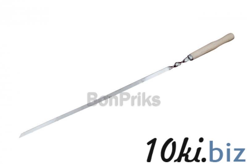 Удобная, деревянная ручка винт, фиксирует шампур на мангале. Заостренный конец, для удобства.