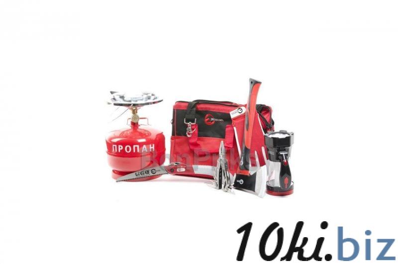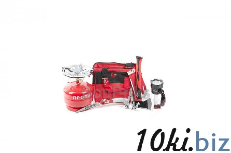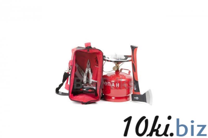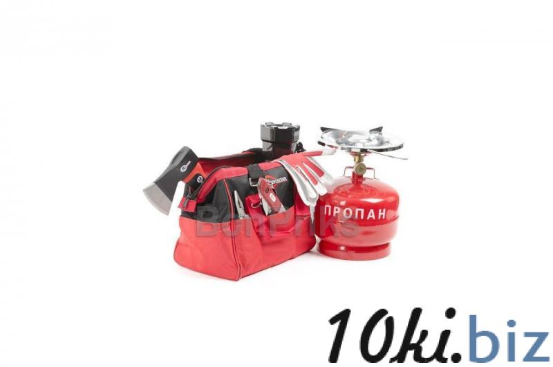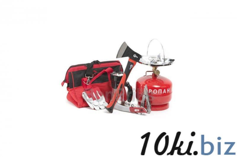 В набор входит: сумка для нструмента, комплект газовый кемпинговый 8 л, топор, мультиинструмент 12 в 1 с чехлом, фонарь аккумуляторный, ножовка, перчатки.