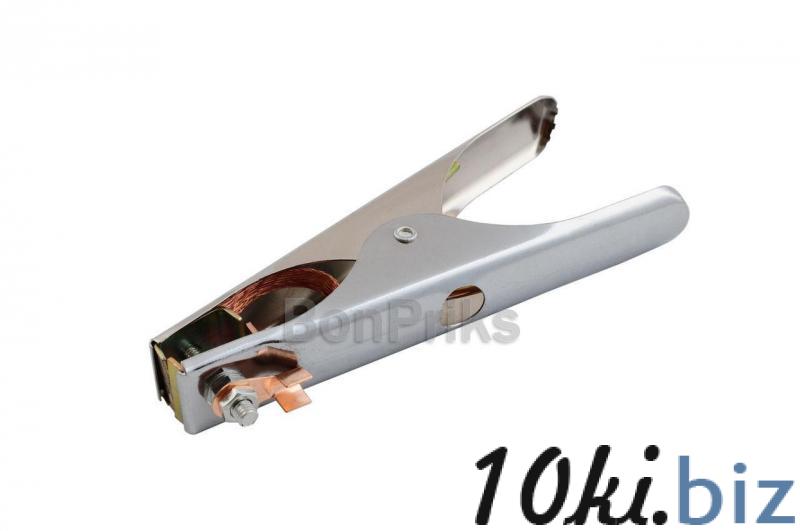 Клемма заземления изготовлена в виде прищепки из стали. Благодаря своему большому размеру может прихватить как лист, уголок, так и трубу. Хромированная. Предназначена для присоединения (заземления) нулевого провода к свариваемой конструкции при сварке с силой тока до 300 А.
