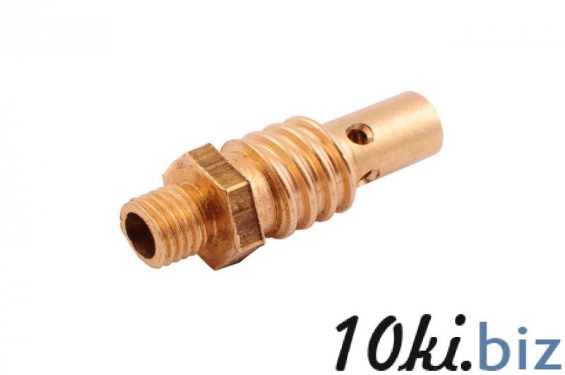 Распылитель газа М8 с наружной резьбой является запасной расходной частью сварочных горелок MIG/MAG для полуавтоматической сварки. Предназначен для монтажа (крепления) и замены токосъёмных (контактных) наконечников в сварочных горелках MIG/MAG и выбирается согласно типу резьбы контактного наконечника и вида газового сопла горелки. Также, токосъемный наконечник М8 с наружной резьбой выполняет функцию распыления защитного газа, и с его помощью крепится газовое сопло.