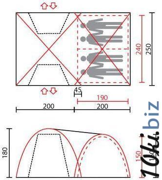 Данная палатка рассчитана на четверых людей. Имеется один тамбур. Конструкция очень простая, что обеспечивает легкую и быструю сборку. Внешний тент состоит из полиэстера 185Т с покрытием из полиуретана. Внутренняя часть палатки состоит из дышащего полиэстера 185Т, обладает водоотталкивающим свойством за счет наличия специальной пропитки. Пол –армированный полиэтилен 120 г/м2. Каркас состоит из фибергласа– 9,5 миллиметров с добавлением стали.