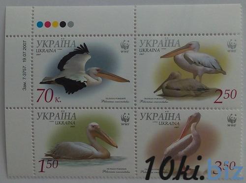 2007 № 855-858 угловая сцепка почтовых марок Фауна Пеликан розовый (Pelekanus onocrotalus) Филателия в Украине