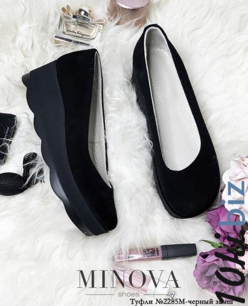 Замшевые туфли с круглым носом на танкетке средней высоты.
