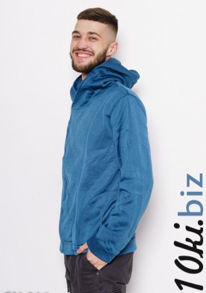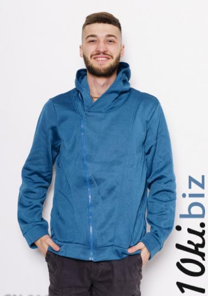 Синяя однотонная спортивная толстовка в молодежном стиле сшитая из комбинированного трикотажа на флисе. Изделие с диагональной функциональной молнией и карманами по бокам оснащено удобным капюшоном. Толстовка имеет прямой крой с длинными рукавами и манжетами.