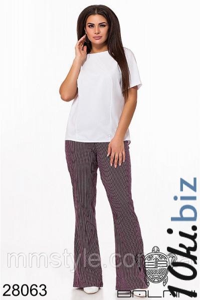 Размер на фото: 48-50 Материал: софт, брюки в поясе на резинке, блуза застегивается на пуговицу Цвет: полоска/марсал Длина изделия: брюки 112/84 см. блуза 65 см. рукав 24/7 см.
